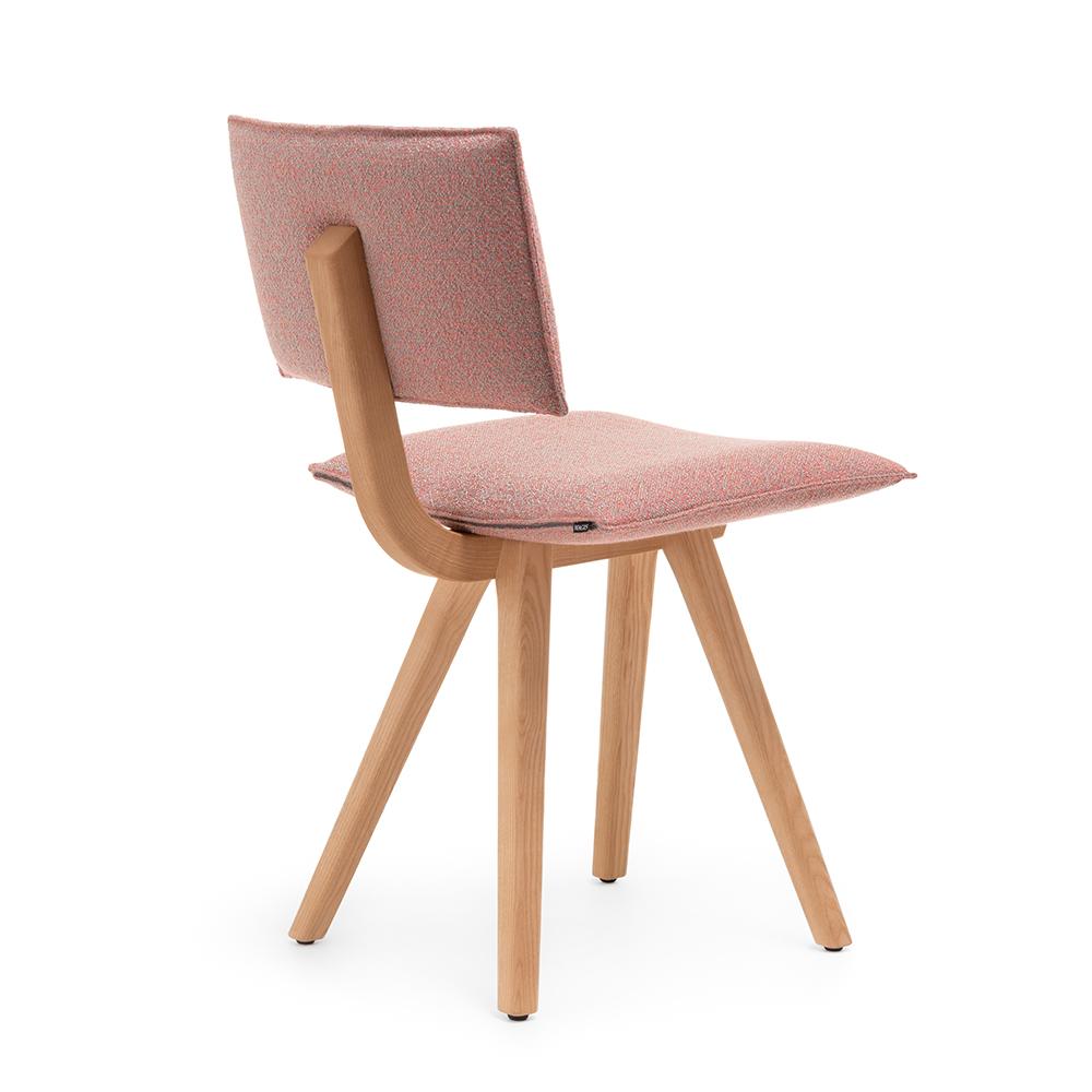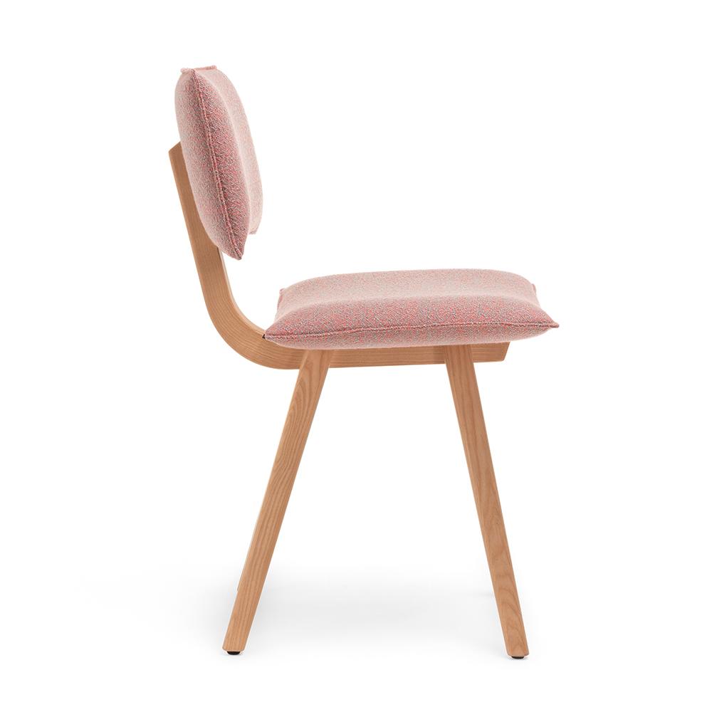Barre courbée à vapeur et pieds en massif de frêne naturel, teinté noir ou chêne. Assise et dossier rembourrés et revêtus en tissu déhoussable.