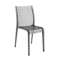 Véritable prouesse technique, Ami Ami nous fait découvrir le plastique sous un aspect totalement inédit et novateur. Semblable à des bandes de cuir souple, le plastique est tressé donnant naissance à un jeu sophistiqué de trames entrelacées ... Ami Ami ("tisser" en japonais) est né de la volonté du designer japonais Tokujin Yoshioka de reproduire l'un des motifs traditionnels de sa culture : les entrelacs. Cette collection (composée d'une chaise et d'une table) est une véritable ode au tramage et au tissage, un condensé de culture orientale traditionnelle et de technologie de pointe dans l'usinage du plastique. La finesse des motifs, la richesse du travail des entrelacs sont obtenues grâce à un procédé industriel complexe qui utilise un moule unique. Les lignes simples et carrées de la chaise et de la table Ami Ami contrastent avec la richesse du façonnage - particulièrement raffiné aussi bien sur la surface interne que sur la surface externe.