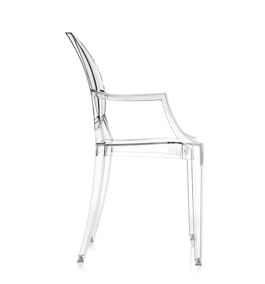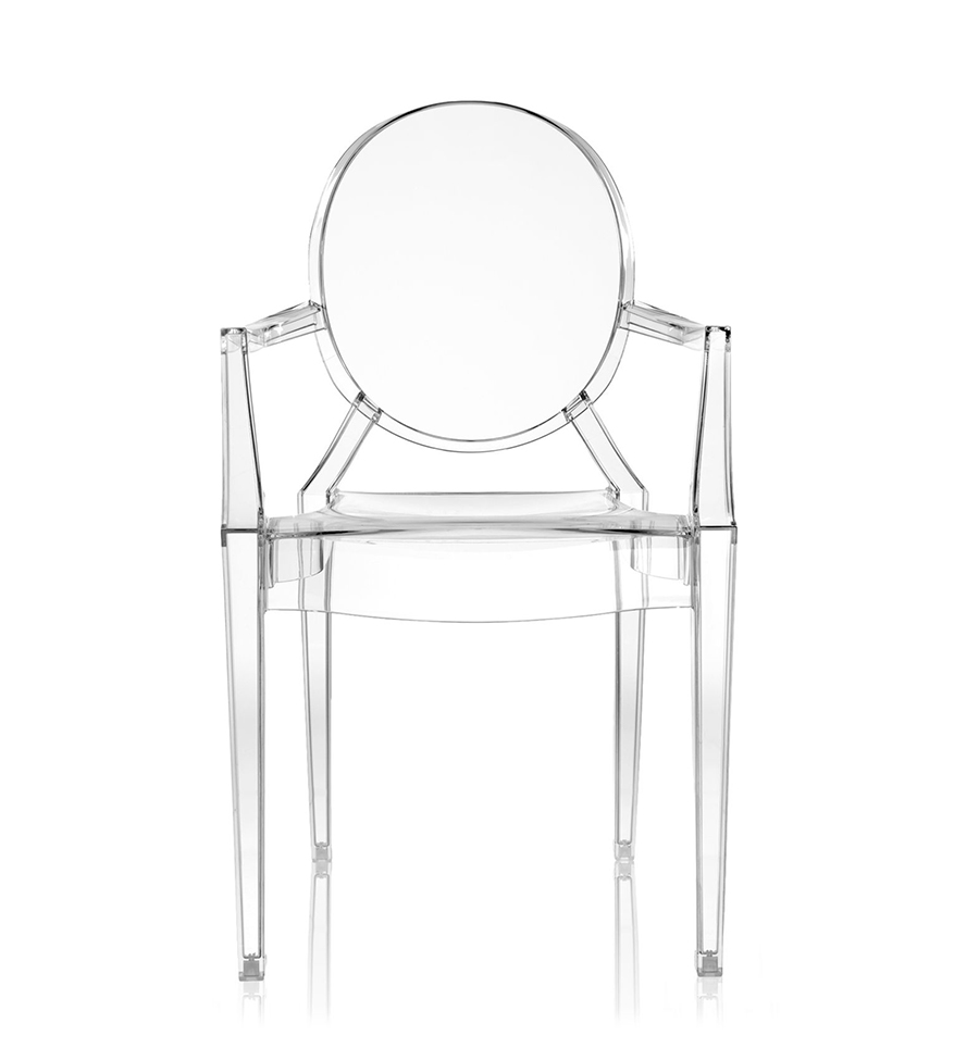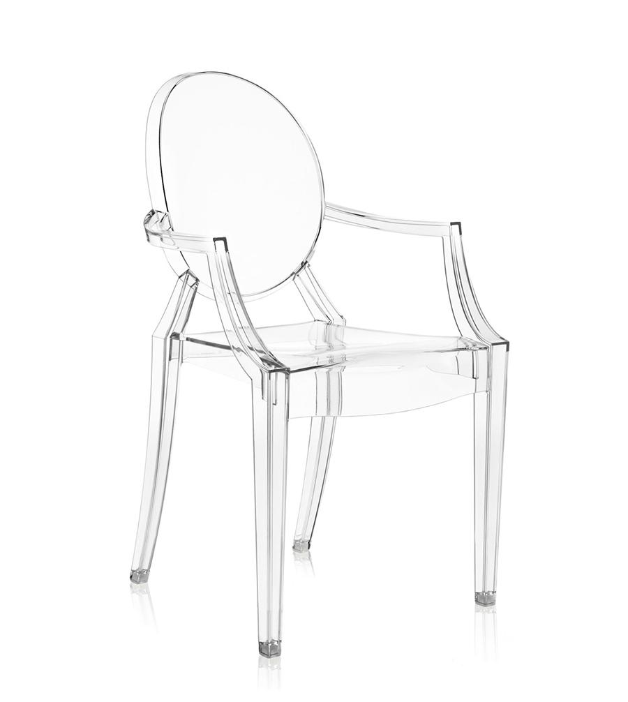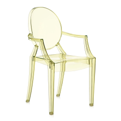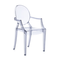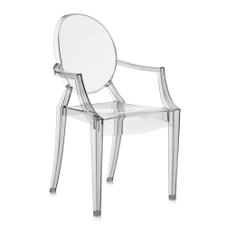 Louis Ghost Kartell est un petit fauteuil confortable en polycarbonate transparent et coloré, du design Louis XV : l’archétype du baroque de Louis Ghost de Kartell est revisité pour étonner, émouvoir, fasciner. Louis Ghost est l’exemple le plus hardi au monde d’injection de polycarbonate en un seule moule. En dépit de son aspect évanescent et cristallin, Louis Ghost est stable, résistant aux chocs, aux griffures et aux agents atmosphériques, empilable jusqu’à six pièces. Un modèle extrêmement attrayant et esthétique qui s’intègre avec élégance et ironie dans tout type d’habitation ou d’espace collectif.