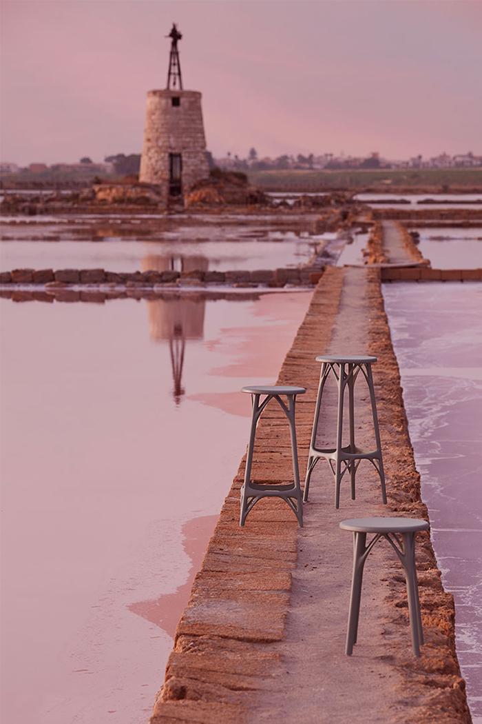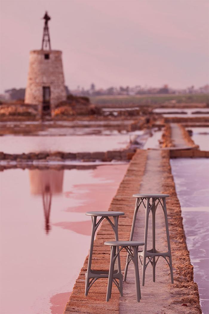 A.I. Stool Light Kartell est une tabouret fabriqué avec des matières recyclées qui met l’accent sur la durabilité du projet. L’assise est durable tant du point de vue de la matière que du processus de production, spécifiquement conçu pour une optimisation totale. En effet, trois modèles peuvent être produits à partir d’un même moule, s’inscrivant ainsi dans une démarche verte qui va au coeur de la production industrielle. Dimensions: Ø 32 x H 75 cm.