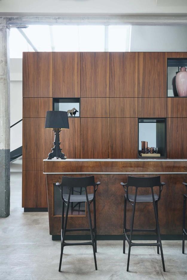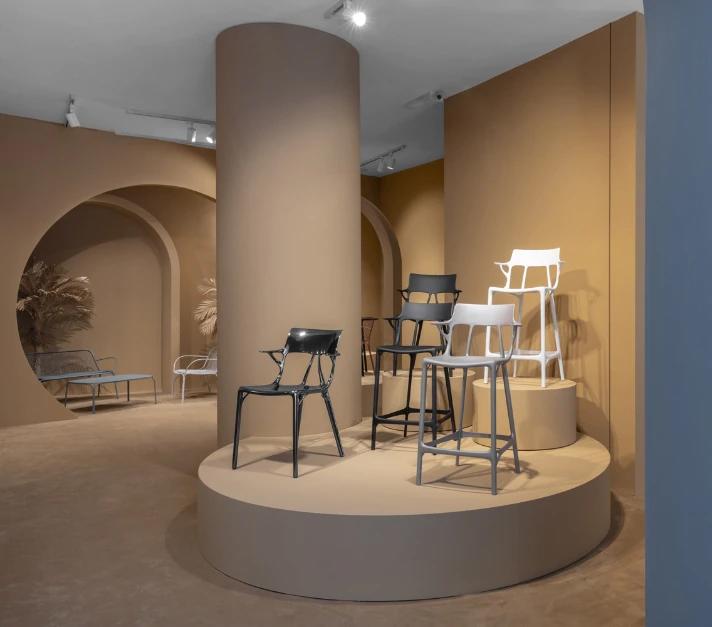 La famille A.I. Kartell s’agrandit aussi avec l’arrivée de A.I. STOOL RECYCLED, un tabouret en matériaux recyclés qui mise tout sur le confort grâce à une assise large et accueillante.