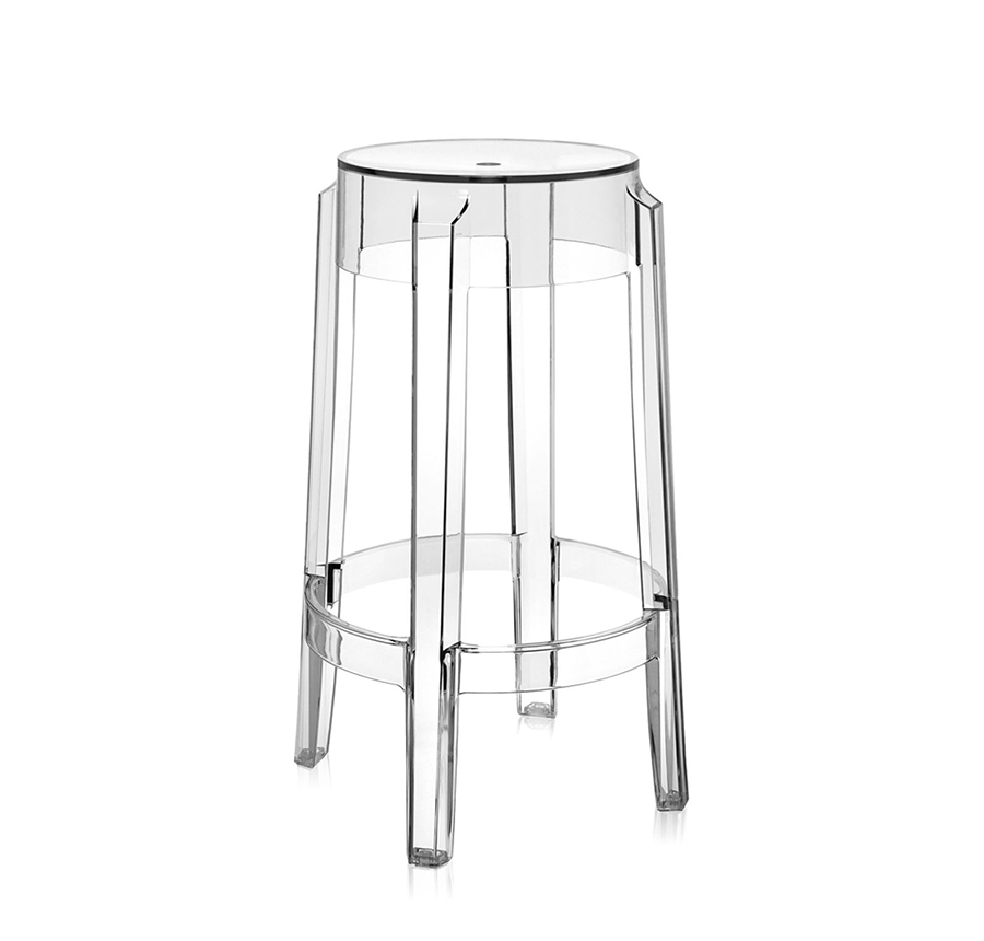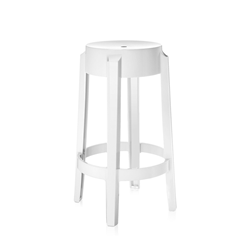 Sa forme rappelle celle des sièges du XIXe siècle : la ligne du pied est évasée à l'image du tabouret classique. Charles Ghost est constituée d’un monobloc transparent en polycarbonate qui le rend indestructible et lui permet de figurer en tout lieu. Il est disponible en trois hauteurs différentes : du simple tabouret servant à s’asseoir de façon informelle eSa forme rappelle celle des sièges du XIXe siècle : la ligne du pied est évasée à l'image du tabouret classique. Charles Ghost est constituée d’un monobloc transparent en polycarbonate qui le rend indestructible et lui permet de figurer en tout lieu. Il est disponible en trois hauteurs différen