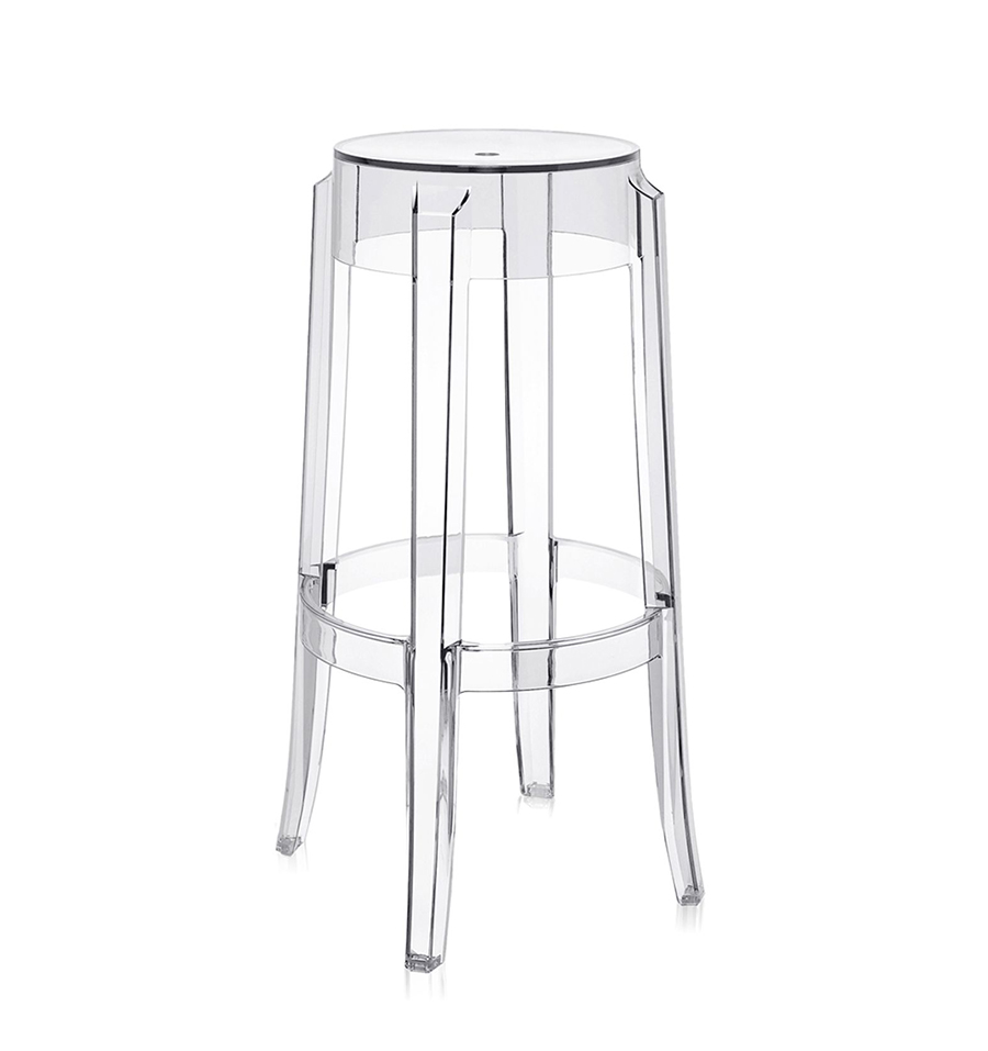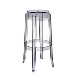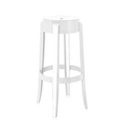 Sa forme rappelle celle des sièges du XIXe siècle : la ligne du pied est évasée à l'image du tabouret classique. Charles Ghost est constituée d’un monobloc transparent en polycarbonate qui le rend indestructible et lui permet de figurer en tout lieu. Il est disponible en trois hauteurs différentes : du simple tabouret servant à s’asseoir de façon informelle eSa forme rappelle celle des sièges du XIXe siècle : la ligne du pied est évasée à l'image du tabouret classique. Charles Ghost est constituée d’un monobloc transparent en polycarbonate qui le rend indestructible et lui permet de figurer en tout lieu. Il est disponible en trois hauteurs différen