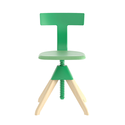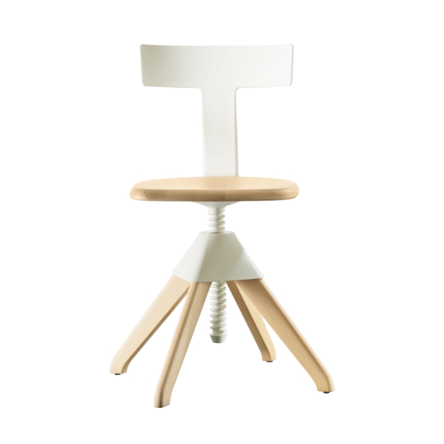 MAGIS chaise pivotant réglable en hauteur TUFFY The Wild Bunch. Matériaux: assise en hêtre massif verni. Pieds en hêtre massif naturel ou verni. Dossier, joint et vis en polypropylène chargé avec fibre de verre.