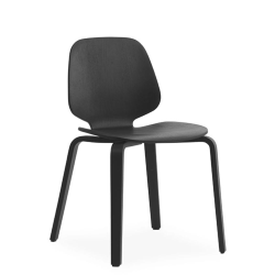 My Chair Normann Copenhagen se compose du corps réalisé en placage de noyer, chêne, chêne fumé ou bouleau avec une laquage transparente ou dans une version en placage frêne verni. Il est fourni avec pieds en placage de noyer, chêne, chêne fumé ou bouleau. Les pièces en caoutchouc entre le corps et les pieds, ainsi que les parties en plastique sous les extrémités des pieds, sont spécifiquement conçues pour Normann Copenhagen pour My Chair. Capacité de chargement: max. Poids dynamique 150 kg. Profondeur assise: 42 cm.