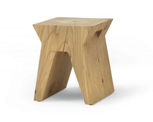 Ce tabouret est fait de bois de cèdre parfumé et il est taillé d'un bloc seul de bois. Le tabouret est idéal tant pour des espaces libres qu'intérieurs. Il ne devrait pas être exposé à la lumière directe du soleil, ou le contact avec l'eau et la glace.