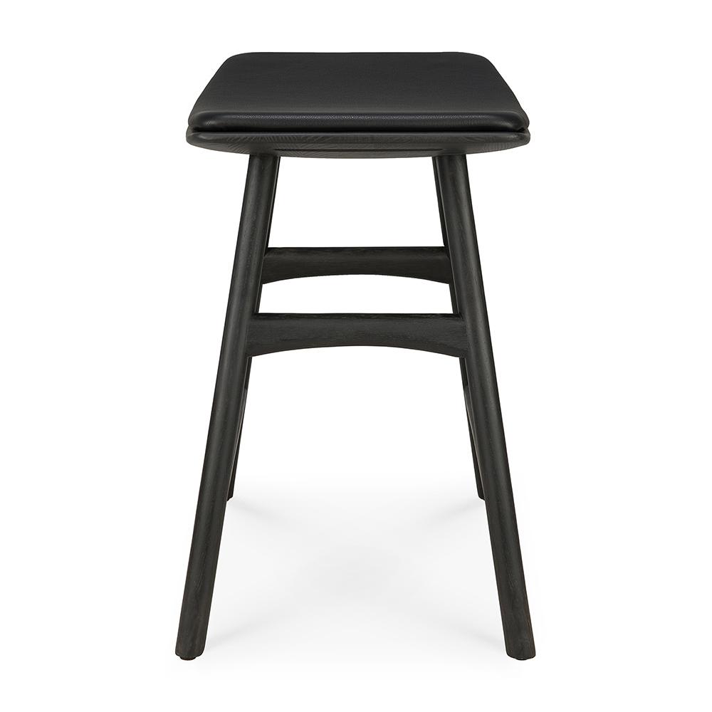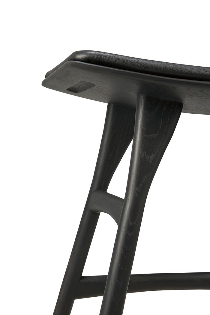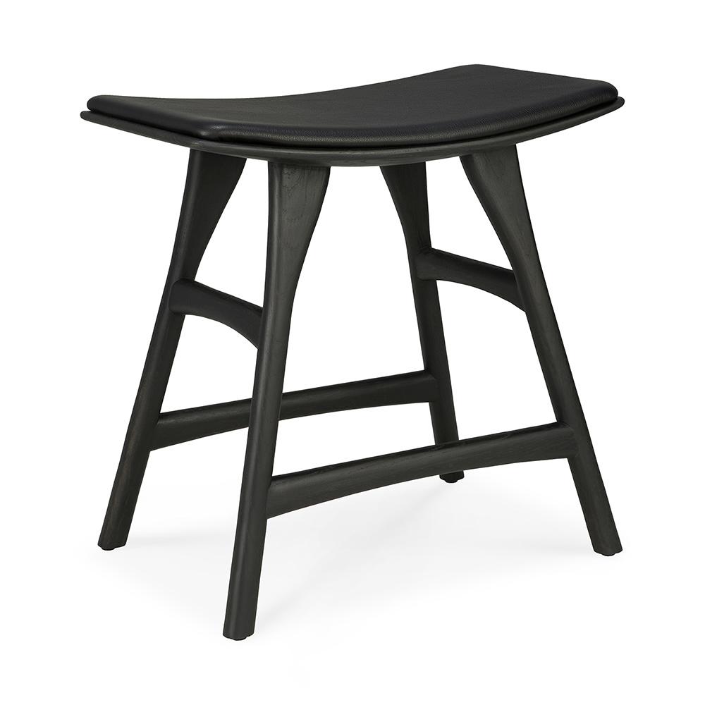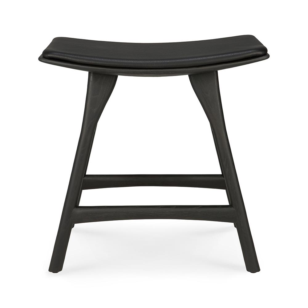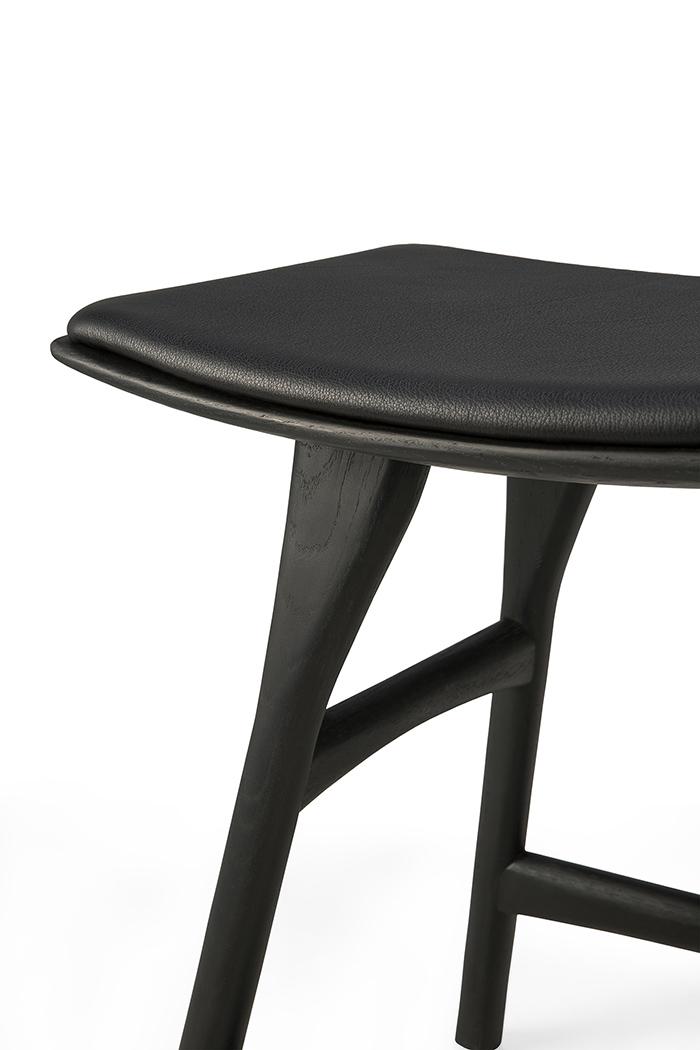 ETHNICRAFT tabouret avec coussin OSSO H 50 cm (Teck peint marron - Bois massif et cuir noir)