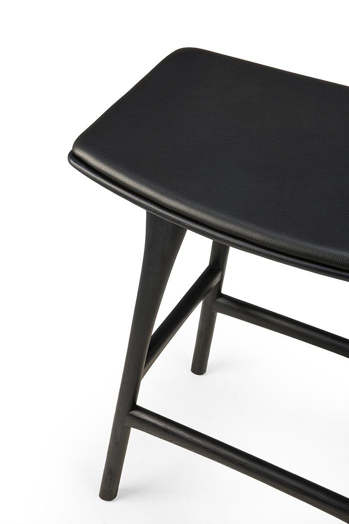 ETHNICRAFT tabouret avec coussin OSSO H 69 cm (Teck peint marron - Bois massif et cuir noir)