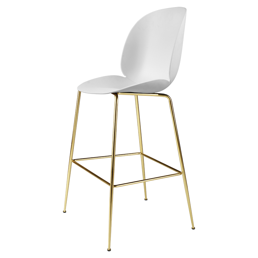 GUBI tabouret BEETLE BAR CHAIR base laiton (Alabaster white - polypropylène et acier)
