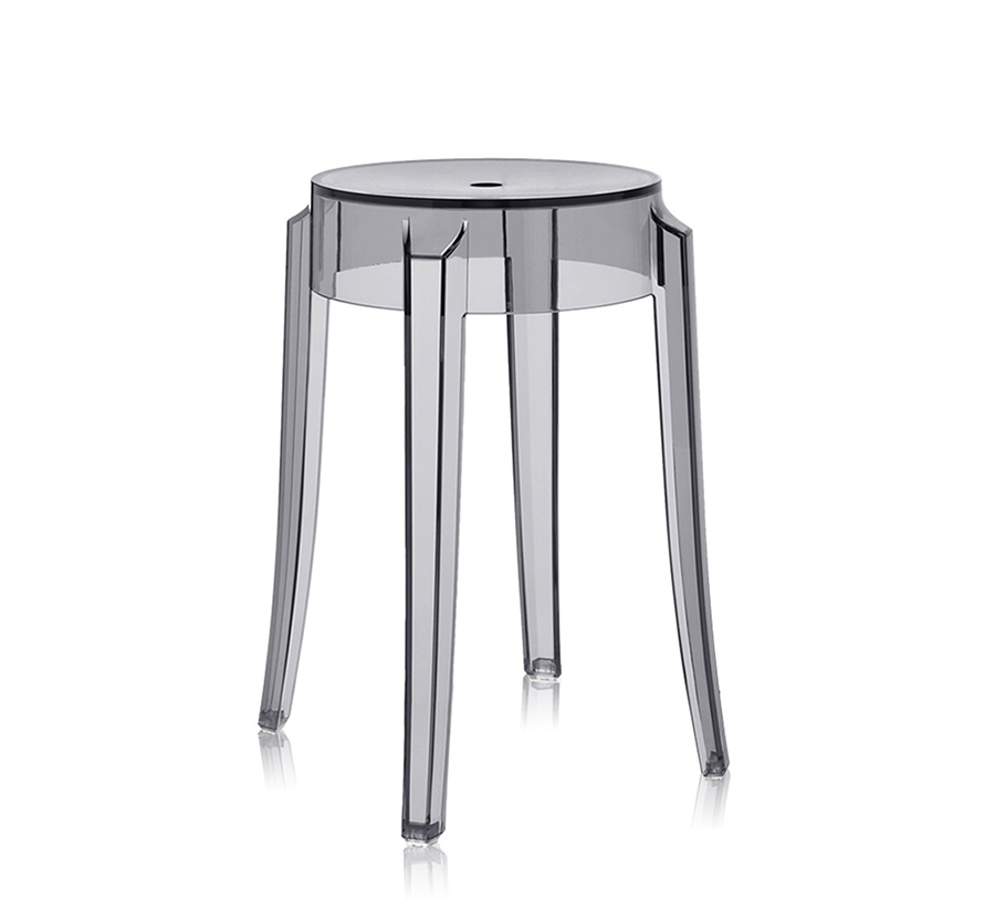 Sa forme rappelle celle des sièges du XIXe siècle : la ligne du pied est évasée à l'image du tabouret classique. Charles Ghost est constituée d’un monobloc transparent en polycarbonate qui le rend indestructible et lui permet de figurer en tout lieu. Il est disponible en trois hauteurs différentes : du simple tabouret servant à s’asseoir de façon informelle eSa forme rappelle celle des sièges du XIXe siècle : la ligne du pied est évasée à l'image du tabouret classique. Charles Ghost est constituée d’un monobloc transparent en polycarbonate qui le rend indestructible et lui permet de figurer en tout lieu. Il est disponible en trois hauteurs différen