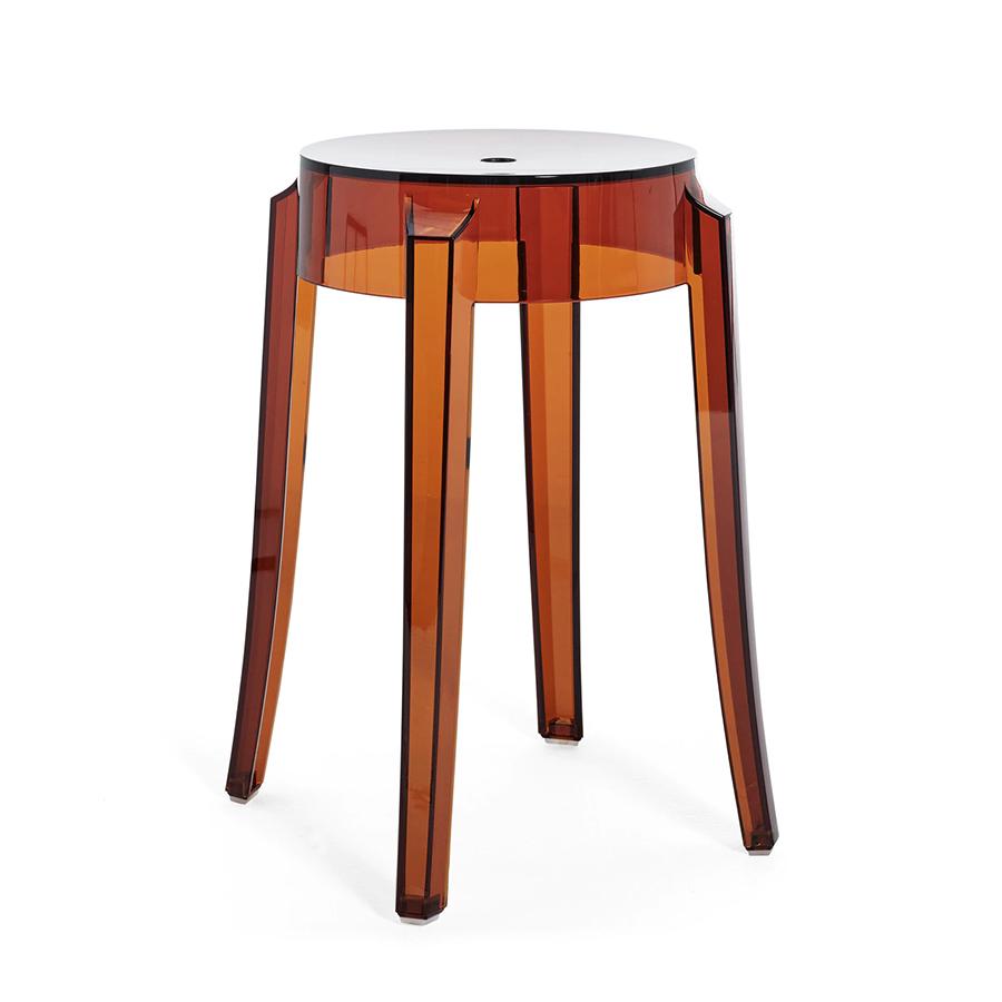 KARTELL tabouret CHARLES GHOST hauteur 46 cm (Ambre - Polycarbonate transparent)