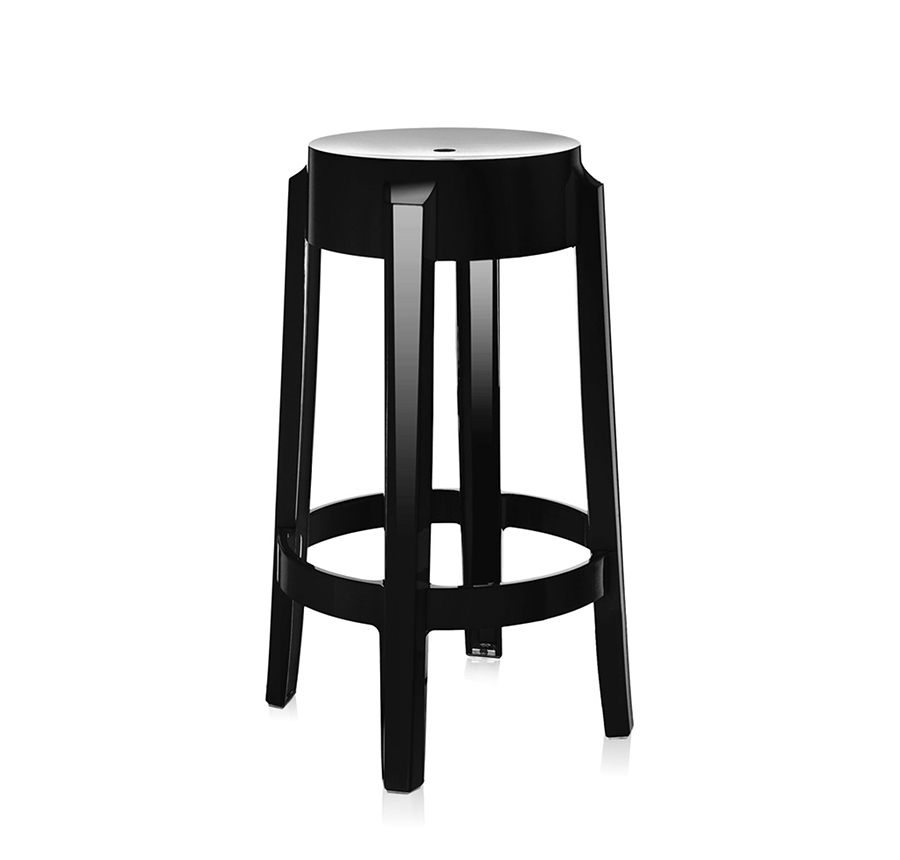 KARTELL tabouret CHARLES GHOST hauteur 65 cm (Noir brillant - Polycarbonate coloré dans la masse)