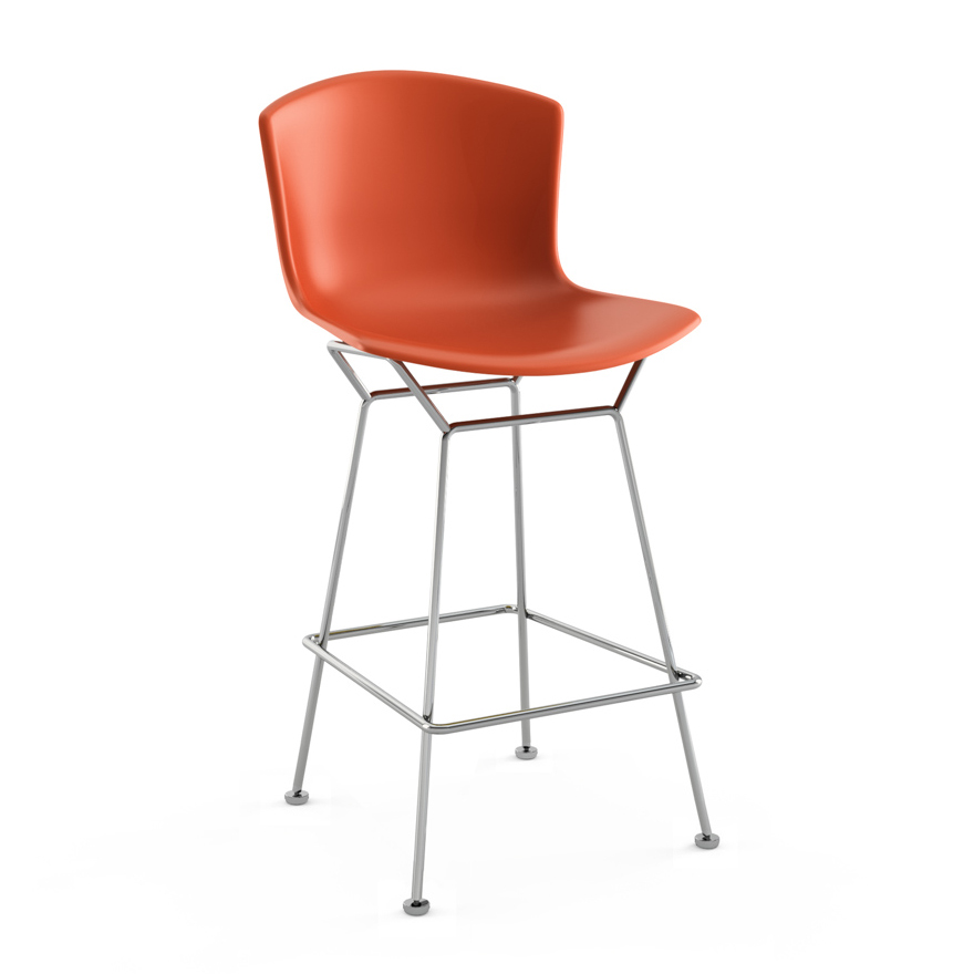 KNOLL tabouret hauteur comptoir BERTOIA Anniversary Edition (Structure chromée / Corps orange - acier / polypropylène)