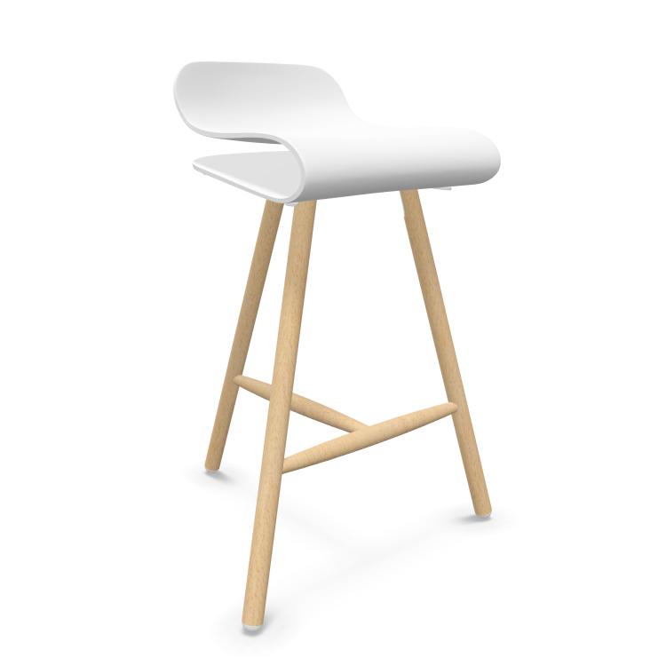 KRISTALIA BCN tabouret avec piètement en bois (Blanc - Hêtre massif et PBT)