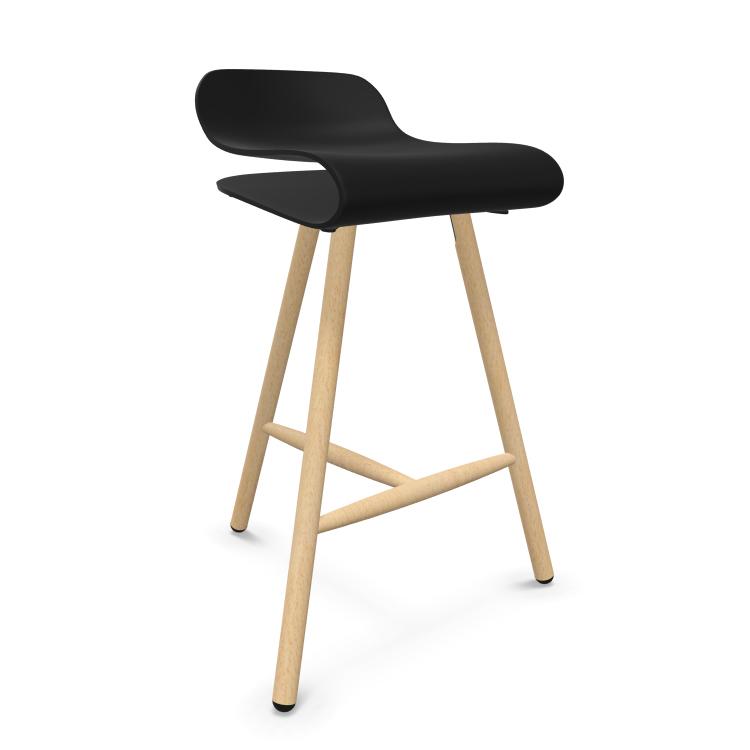 KRISTALIA BCN tabouret avec piètement en bois (Noir - Hêtre massif et PBT)