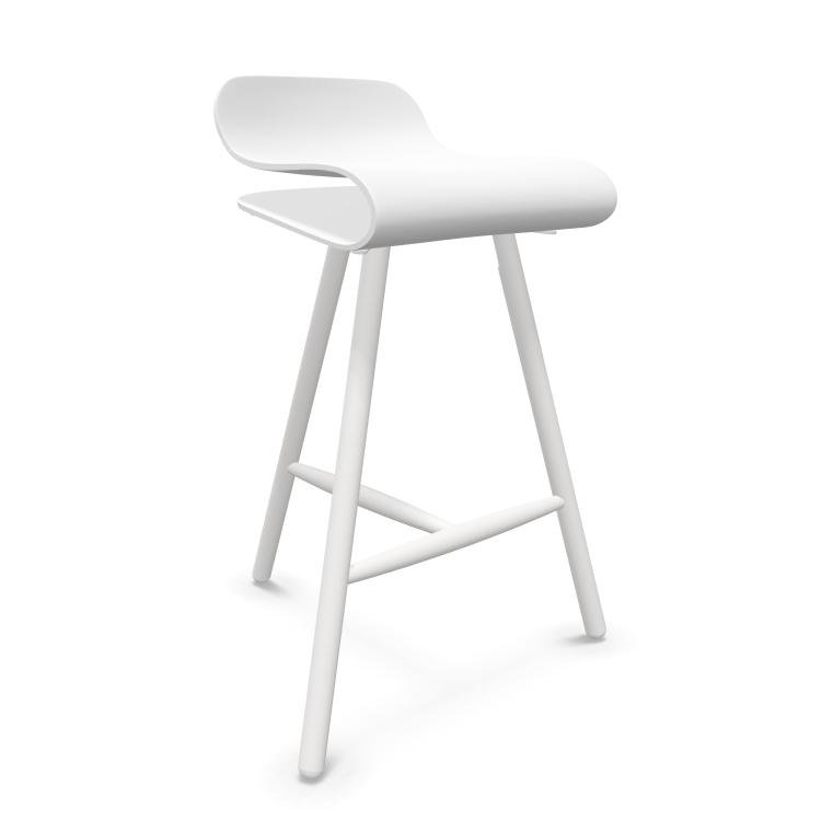 KRISTALIA BCN tabouret avec piètement en bois (Blanc - Hêtre massif laqué et PBT)