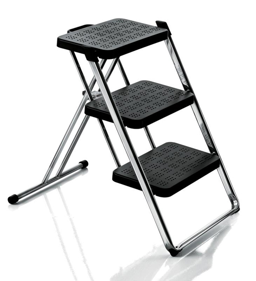 L'escalier flexible Nuovastep de Magis a le métier à tisser en tuyau d'acier verni ou chromé et les 3 marches sont réalisées en abs coloré. Le système de blocage est en pressofusione d'aluminium. Pratique et compacte, d'écluse il occupe 6 cms seuls: ceci permet d'être aisément et confortablement secrète aussi en places contenu.