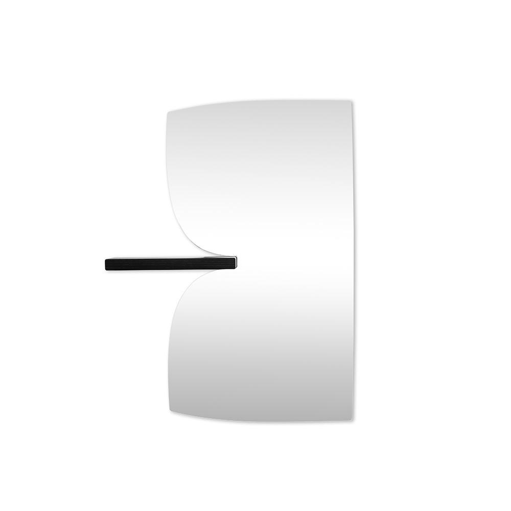 Le miroir Morphed avec étagère, conçu par Paul Cocksedge pour Magis, introduit une nouvelle fonction à la surface réfléchissante. La structure conserve la forme déformée qui caractérise la collection, mais intègre une ou deux étagères en bois massif de frêne teinté noir, conçues pour accueillir les petits objets du quotidien.