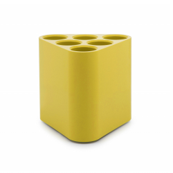 Poppins Magis si sent soit sérieux que ludique; la plastique brillante en souligne l'imperméabilité, tandis que la forme rappelle un jeu, comme le triangle utilisé dans le billard et dans le snooker. Il y a plusieurs types de porte-parapluie, mais l'archétype est conçu pour les parapluies traditionnels longs avec poignée crochue. Notre intention était celle de créer une pièce graphique tridimensionnelle qui fonctionne parfaitement soit pour parapluies longs que compacts. La forme triangulaire a été choisie parce qu'elle s'adapte bien à n'importe quelle position dans une pièce, y compris les coins, et elle s'emboîte magnifiquement. Une simple série de trous permet d'ouvrir facilement parapluies enveloppés ou déroulés à n'importe quelle dimension. Edward Barber et Jay Osgerby.