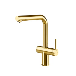 La collection Inedito Gessi identifie le minimalisme, avec des formes géométriques linéaires et une pureté particulière. Ses proportions déjà bien connues transmettent solidité et style même dans la nouvelle version qui intègre harmonieusement un système à bouton-poussoir pour la distribution d'eau filtrée. Un geste immédiat se traduit par la beauté et la durabilité. Mitigeur d'évier de cuisine avec fonction eau filtrée. A combiner avec le kit de filtration 01595 (non inclus).