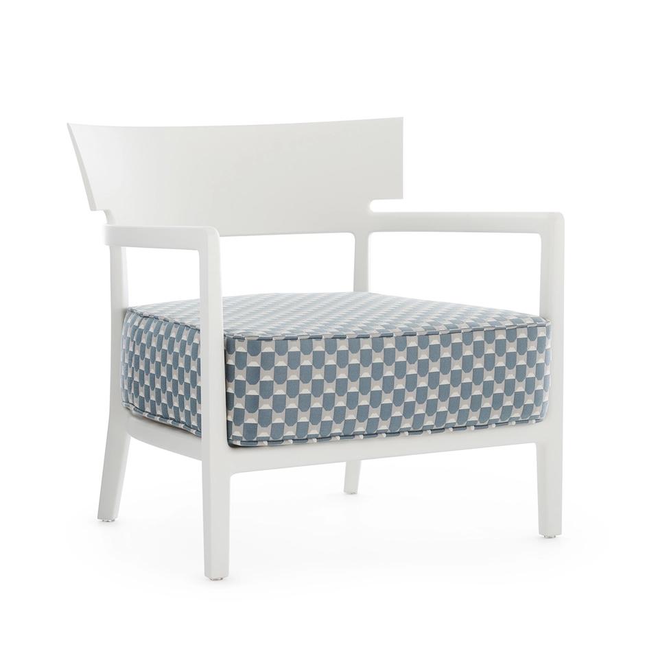 KARTELL fauteuil pour l'éxterieur CARA OUTDOOR MAT (Blanc / Bleu - Polycarbonate peint doux au toucher et tissu Obi Check)