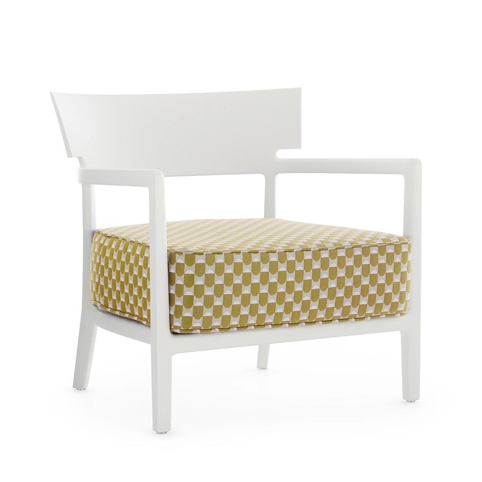 KARTELL fauteuil pour l'éxterieur CARA OUTDOOR MAT (Blanc / Jaune - Polycarbonate peint doux au toucher et tissu Obi Check)