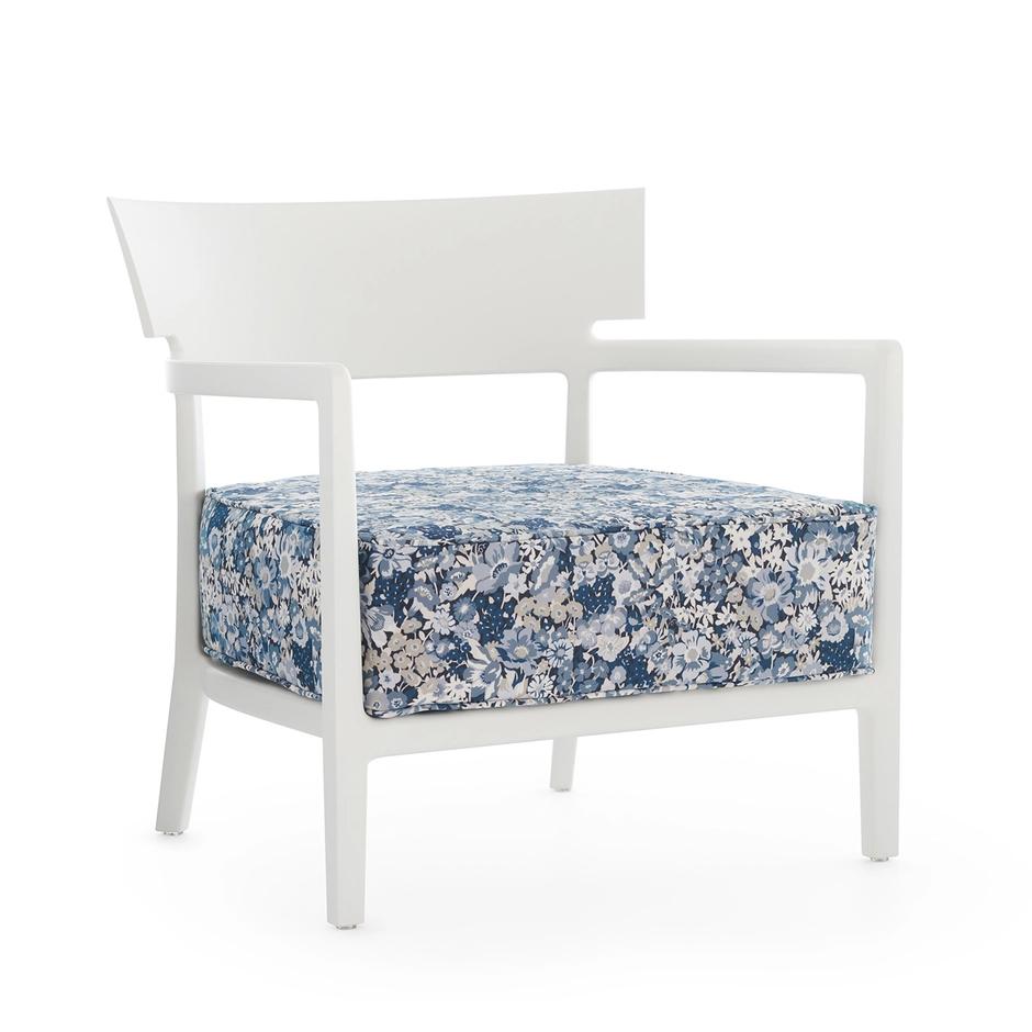 KARTELL fauteuil pour l'éxterieur CARA OUTDOOR MAT (Blanc / Bleu - Polycarbonate peint doux au toucher et tissu Artemis)