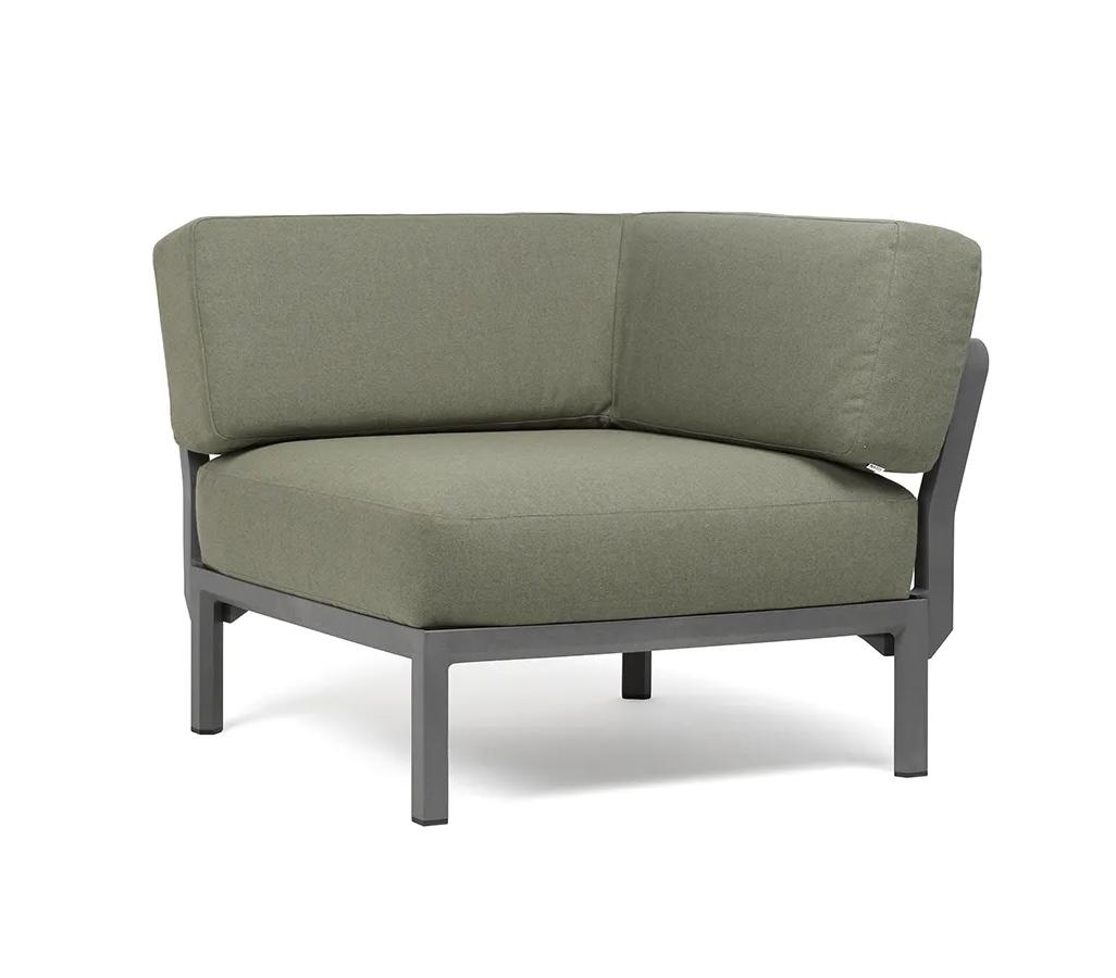 NARDI fauteil élément d'angle MAXIMO (Basalte / Thym - Fibre de verre régénérée, polypropylène et tissu Sunbrella hydrofuge)