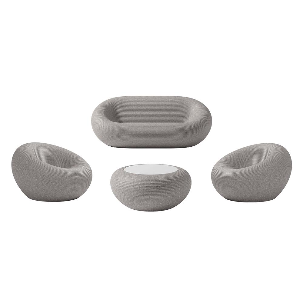 QEEBOO set canapé + 2 fauteuils + table basse NAMI Gris, mélange de matériaux recyclés