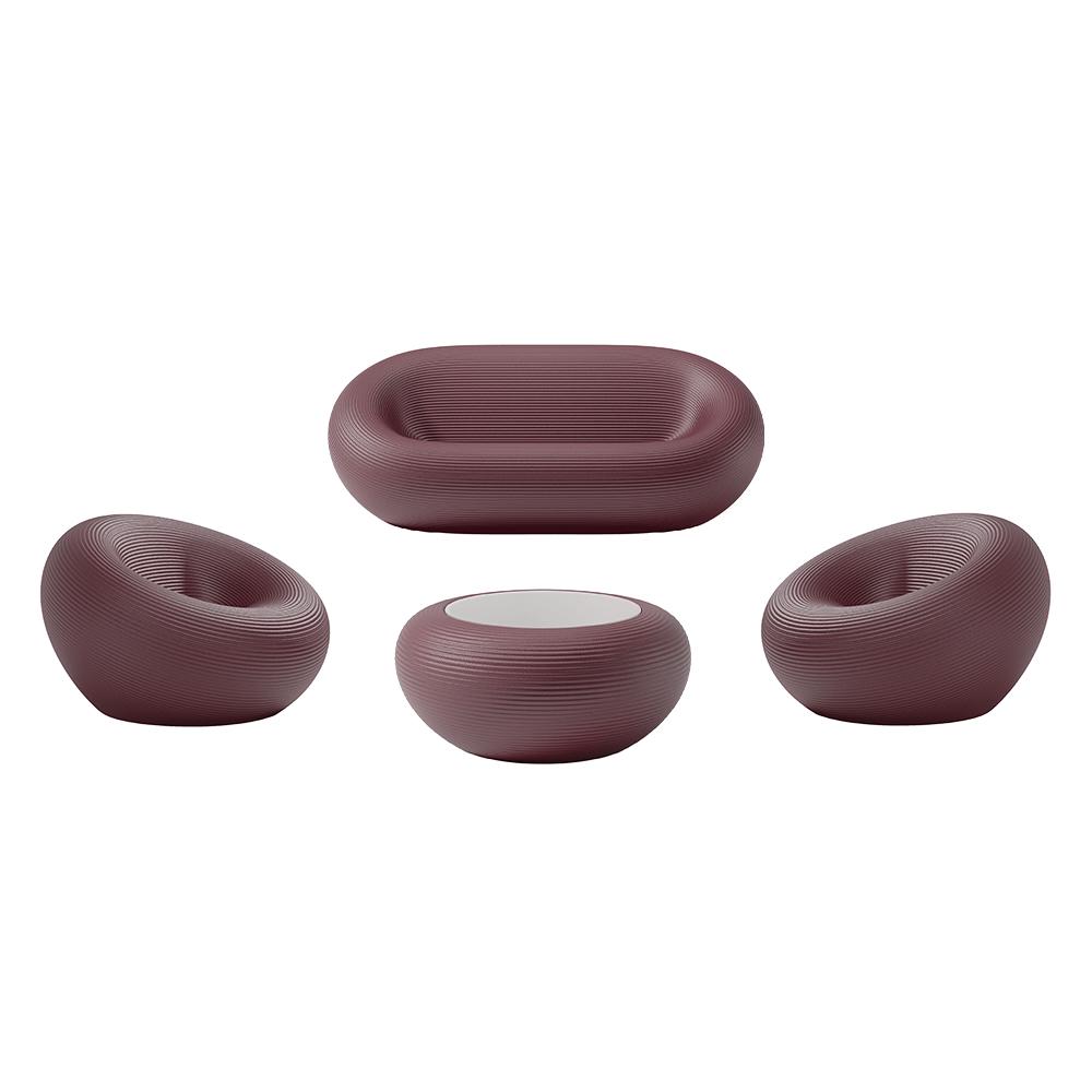 QEEBOO set canapé + 2 fauteuils + table basse NAMI Indien rouge, polyéthylène