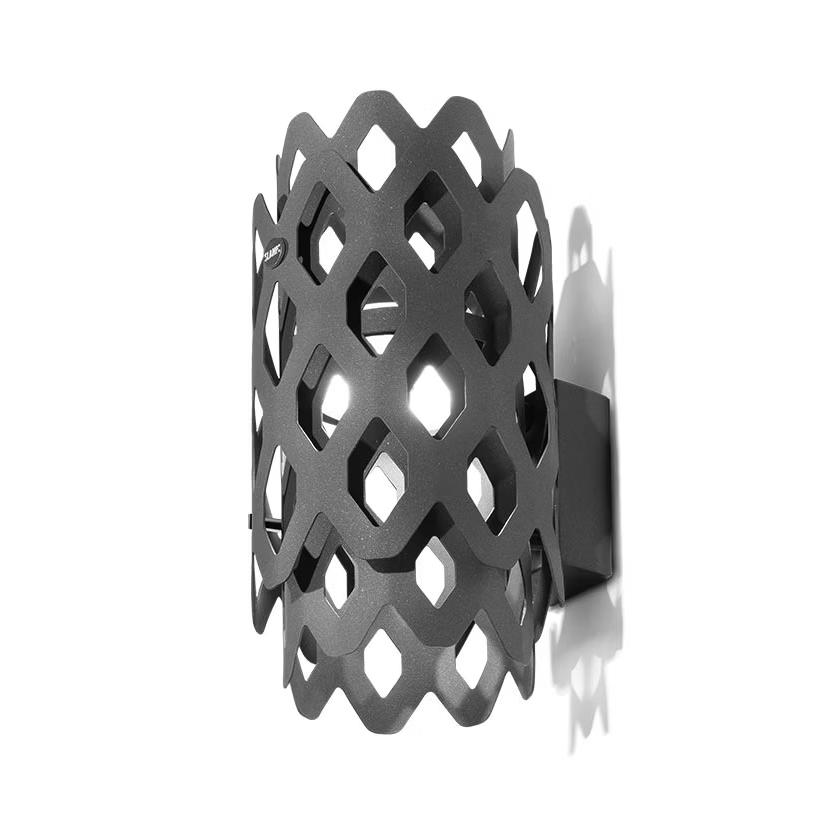 Un laborieux motif en nid d'abeille caractérise le design de Charlotte, la collection iconique signée par Doriana et Massimiliano Fusksas pour Slamp, prête à offrir des perspectives hypnotiques et toujours nouvelles, y compris dans la version extérieure, grâce à sa surface aux formes hexagonales perforées. L'acier traité par cataphorèse et peint par poudrage (Anthracite, Corten ou Light Gray) confère à la Charlotte Applique une résistance maximale aux rayons UV et à la corrosion. LED integrée: 4.2W - 220~230 Vac - 500 Lumen - 3.000 Kelvin - Integrated Bidirectional LED