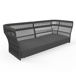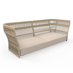 Le large canapé Cliff Talenti s'insère dans la forme unique des éléments de la collection. L'entrelacement de cordes se retrouve dans les autres éléments de la collection et rend cet élément parfaitement en ligne avec l'idée de jeu et amusement qui caractérise toute la Cliff Talenti. Les dossiers composés d'une structure interne en aluminium sont disponibles en deux différentes hauteurs: H 90 cm revêtus par un entrelacement de cordes en tissu synthétique et H 78 cm avec rembourrage réalisé en quick dry foam et revêtu par tissus étudiés pour l'outdoor imperméables.