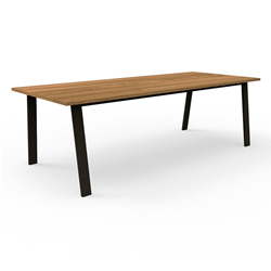La table à manger 240x110 cm de la collection Cottage Talenti unit le style rustique à celui minimaliste. Le plateau, réalisé en bois iroko, est soutenu par une solide structure en aluminium, dont l'inclination des pieds interrompt la linéarité de la forme. Aux grandes dimensions, la Table à manger accueille jusqu'à 10 personnes.