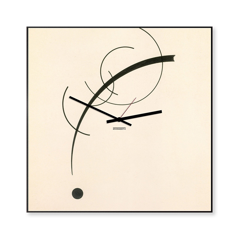 L'horloge Kandinsky est accessoire élégant inspiré de l'une des œuvres les plus significatives de l'artiste: "Ligne courbe libre vers le point: son simultané de lignes courbes géométriques".