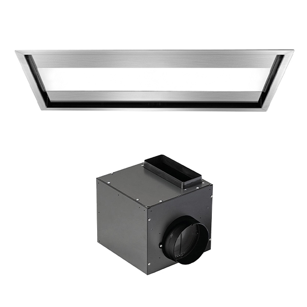 FALMEC hotte au plafond NUVOLA 90 cm (Brossé avec moteur sous combles 950 m3/h - acier et verre)