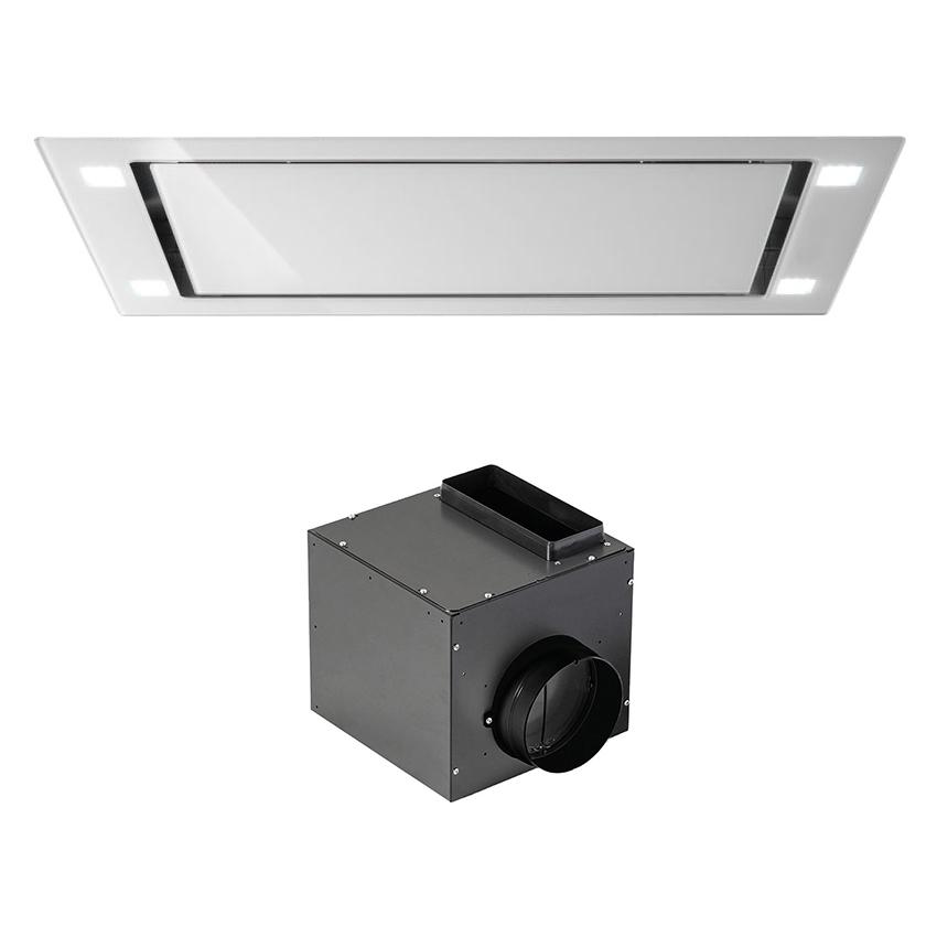 FALMEC hotte au plafond SIRIO 90 cm (Blanc avec moteur sous combles 950 m3/h - Verre trempé)
