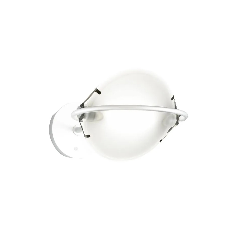 Structure en métal blanc opaque BI (RAL 9003 mate), chromé CR ou nickelé satiné NS. Diffuseurs en verre satiné. Il est prévu un réflecteur en aluminium anodisé pour la lumière indirecte et une entretoise pour les connexions électriques.