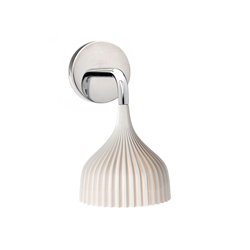 Une lampe du design simple et essentiel, disponible en deux versions: applique et suspension. L'applique est composé d'un diffuseur à la rosace en policarbonato plissé, disponible en couleur plus variante et un bras en métal chromé de la longueur de 11 cms. Ampoule incluse: E14 Max 5W Led 2700°K