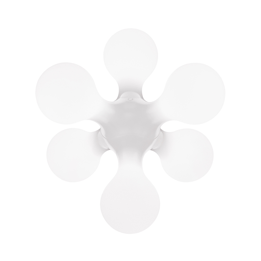 Atomium Kundalini a une forme organique et extravertie inspirée à l'imaginaire science-fiction et préparée pour une diffusion de la lumière multidirectionnelle et en même temps d'atmosphère. Lampe de table ou lampadaire avec diffuseur en polyéthylène moulé en rotatif et structure interne à six lumières montées sur ressorts tendus en acier. Ampoules non incluses: LED 6x6W E14.