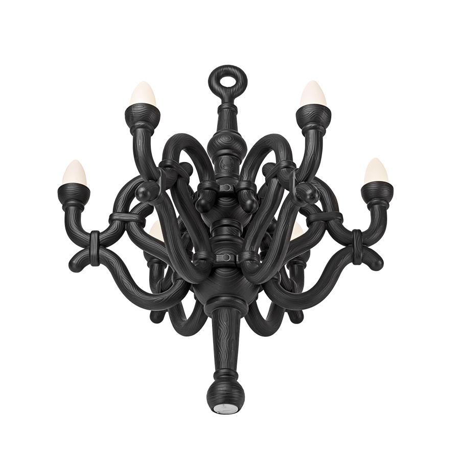 Fallen Chandelier Qeeboo est une lampe wireless rechargeable adaptée pour milieux intérieurs et extérieurs, dessinée par Studio Job. Influencé par les courbes classiques de Thonet du XIX siècle, cet objet voyage dans le temps pour être protagoniste absolu en tout lieu où il vit et vous accompagne dans un rêve d'élégance sans âge. Elle peut être réglée à distance par télécommande. 6 x 3W LED, autonomie de la batterie: 6h.