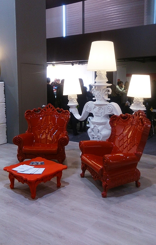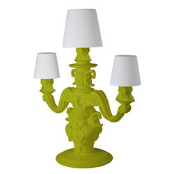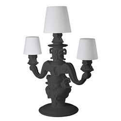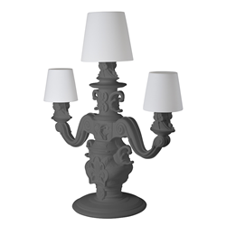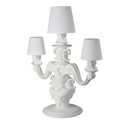 Le lampadaire King of Love a été conçu par Graziano Moro et Renato Pigatti. Un élément d’illumination fondamentale absent dans la gamme introductive de la Design of Love Collection. La base de la lampe est de style baroque, tandis que les trois grands chapeaux lumineux avec une taille majestueuse, ont une particularité innovante: le polyéthylène est traitée avec une finition de surface spéciale, une texture de motifs classiques, pour obtenir une touche raffinée et élégante.