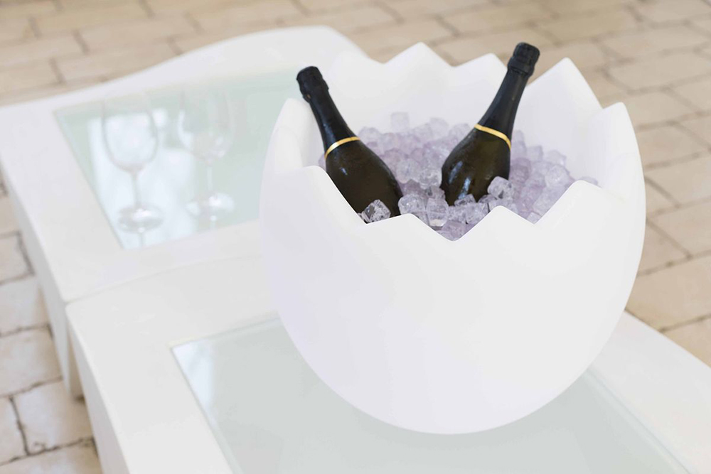 Kalimera Slide est la co-star indispensable pour illuminer vos toasts avec ironie et enjouement. Kalimera, en grec "bonjour", rappelle la coquille d'un œuf à la coque, idéale pour donner une touche décontractée aux décors intérieurs et extérieurs, avec simplicité mais sans sacrifier l'élégance et la magie des accessoires d'ameublement en polyéthylène typique de la production SLIDE. Kit LED RGB 3W inclus.