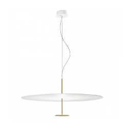 Dot Lumina est une famille de lampes suspendues conçue par Foster + Partners pour que les luminaires ressemblent à des disques de lumière. Leur conception combine judicieusement la rigueur formelle et la technologie d'éclairage la plus avancée. Dot se compose de deux disques parallèles de tailles différentes reliés en leur centre par un fin tube métallique. Le disque inférieur, plus petit, est en aluminium tourné et contient un anneau LED conçu optiquement pour projeter une grande quantité de lumière sur le disque supérieur, le diffuseur, en aluminium laqué. La source à haute puissance génère une quantité de chaleur que le disque inférieur ne pouvait pas dissiper par lui-même. Le problème a été résolu en plaçant un dissipateur thermique spécial (utilisé dans l'industrie aérospatiale) dans le tube fin qui relie les disques. Sa fonction est de connecter thermiquement le circuit de la LED à un dissipateur de chaleur logé dans le disque supérieur. Lorsqu'il est allumé, le Dot est un disque fin et léger, apparemment suspendu dans l'air, qui génère un flux de lumière enveloppant et sans ombre. Dot existe en trois diamètres et puissances différents : ø60cm (23W), ø80cm (41W), ø110cm (55W). Il existe deux finitions : noir anodisé et laiton anodisé. LED Integrée.