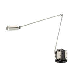 Emblème incontesté de l'élégance et de la fonctionnalité, la Daphine représente l'essence de Lumina. L'idée qui a présidé à la création de la lampe Daphine est aussi simple qu'efficace : un diffuseur pivotant, un bras articulé en deux segments et un transformateur électromécanique sur une base cylindrique entre deux capuchons métalliques. Le Daphine a vu le jour dans un petit atelier de Sedriano (province de Milan) en 1975, grâce aux mains habiles de Tommaso Cimini, expert en ingénierie mécanique, et aux machines qu'il avait réaménagées à cet effet. Le Daphine naît de la philosophie de conception de Tommaso Cimini, "Beaucoup de lumière, peu de lampe", qui est toujours l'essence de chaque produit portant le nom de Lumina, la société qu'il a créée en 1980. 45 ans plus tard, l'esthétique et la fonctionnalité de Daphine n'ont pas changé, ce qui prouve la validité de l'idée originale. Testée et éprouvée tout au long de sa longue histoire de production, cette lampe se prête à d'innombrables utilisations dans des lieux publics et privés, des pupitres de bibliothèque aux pianos, des comptoirs de bijouterie aux vitrines des grandes marques de mode. La Daphine mérite sans aucun doute le statut d'"icône du design d'éclairage". Au fil des ans, il a figuré dans les collections des principaux musées de design et d'art contemporain du monde, notamment le Brooklyn Museum et la Judd Foundation de New York, le Musée des Arts Décoratifs de Paris, la Neue Sammlung de Munich et la Triennale de Milan. Le Daphine est actuellement disponible dans la version halogène classique (uniquement pour le marché européen) ou avec une source LED, dans laquelle le transformateur électromécanique a fait place à l'électronique qui garantit une puissance lumineuse plus élevée, une qualité de couleur extrêmement élevée, une température de fonctionnement basse et une consommation d'énergie réduite. LED Integrée.
