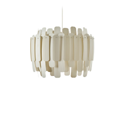 Le bricolage Maruja est emballé avec tous les composants nécessaires pour assembler la lampe : des bandes de bois plaqué (dans différentes tailles), un cadre circulaire et des broches. Maruja est facile à construire, sans outils ni autocollants. À l’aide d’une broche, chaque bande de bois est découpée sur le cadre circulaire-insérer une ampoule, et vous serez créé un élégant, lampe faite à la main. Les bandes de placage en bois pendent et se déplacent librement, et quand elles sont éclairées, Maruja brille de la vie. La rosette a une finition Blanc.