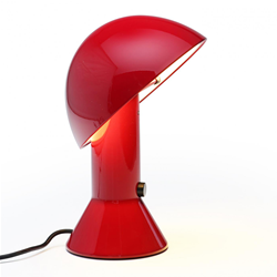 Elmetto Martinelli Luce est une lampe de table à lumière indirecte. Base et réflecteur orientable avec écran interne en aluminium couleur blanc. La structure est moulée en résine de couleur blanc, noir, orange, vert, jaune, bleu. Nouvelle version en rouge pourpre pour fêter des 40 ans d'existance et dans les couleurs pastelles rose et bleu clair.