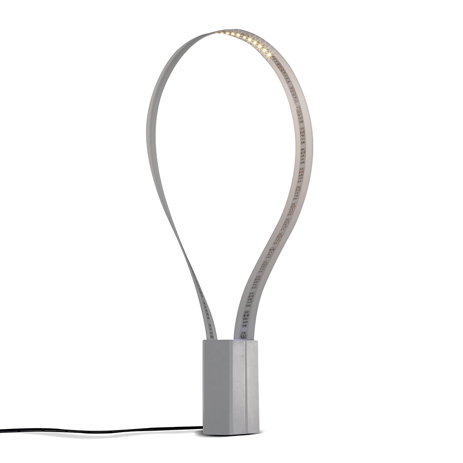 Fluida Martinelli Luce a été créée tel un objet contemporain capable de s’adapter aux multiples exigences d’un bureau. Grâce aux leds intégrés situés dans la bande flexible et aux aimants placés sur les deux bases, elle peut être installée dans plusieurs positions ; une petite architecture lumineuse capable de créer de nombreuses prestations lumineuses, quelque soit sa position.Lampe de table a lumiere directe composee d'une bande flexible avec une source de lumiere a led assemblee sur deux bases en resine. Les aimants permettent l'assemblage des deux bases dans plusieurs positions en changeant l'orientation de la bande a led en creant a chaque foit differentes formes lumineuses.
