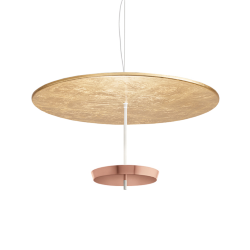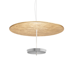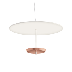 Ombrella Modoluce est une lampe à suspension ou au plafond en métal verni. L’échange de réflexes et rebonds entre les deux surfaces superposées éclaire l’espace de façon indirecte par une lumière diffuse et accueillante. LED integrée 25W 4425 Lm 3000 K