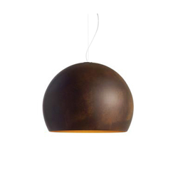 Lalampada d'Opinion Ciatti, réalisée par Lapo Ciatti, c'est une lampe de forme sphérique en aluminium, quatre mesures, quatre différentes applications: de suspension, de plein pied, de table, murale. Optionnel: solide chaînes décoratives chromées ou dorées, protégées par une peinture transparente. Finition externe/interne: ciment/argent, bronze/or, feuille d’or/or.