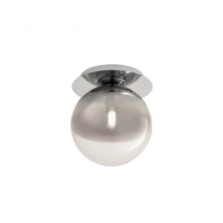 Berry Redo Group est une lampe au plafond d'intérieur, structure en métal finition or mat avec diffuseur en verre soufflé opale teinté ou structure en métal chromé avec diffuseur en verre soufflé teinté fumé. Ampoule exclue.